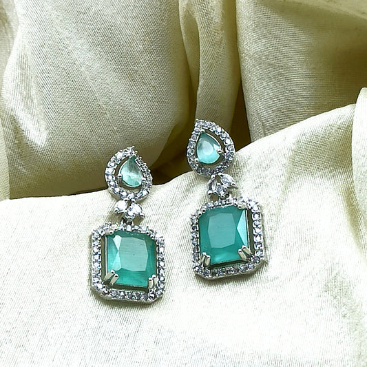 AD Earrings Aakar Mint Green Stone Dangler