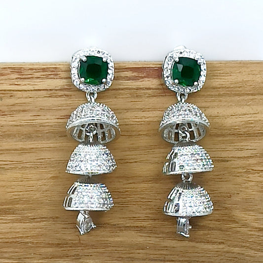 AD Earrings Tri Jhumki Green Stone Jhumki