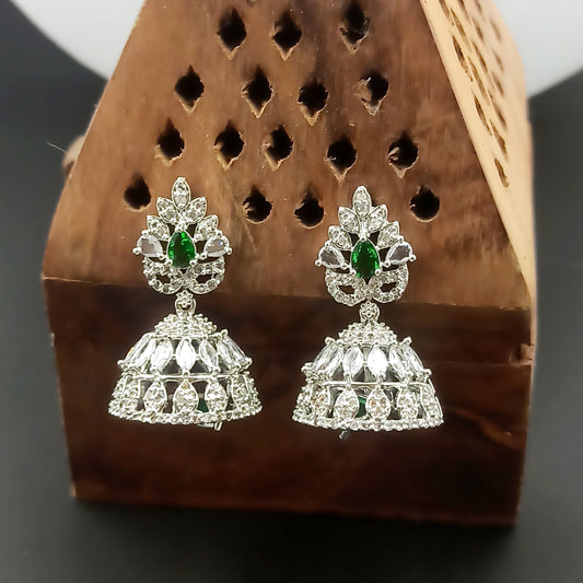 AD Earrings Anamika Jhumki Green Stone