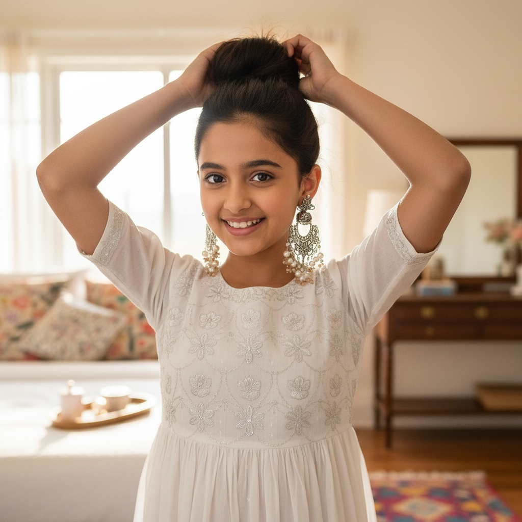 - Everyday Ethnic Touch – Pair oxidised earrings with kurtis, cotton sarees, or salwar suits for a subtle desi vibe.